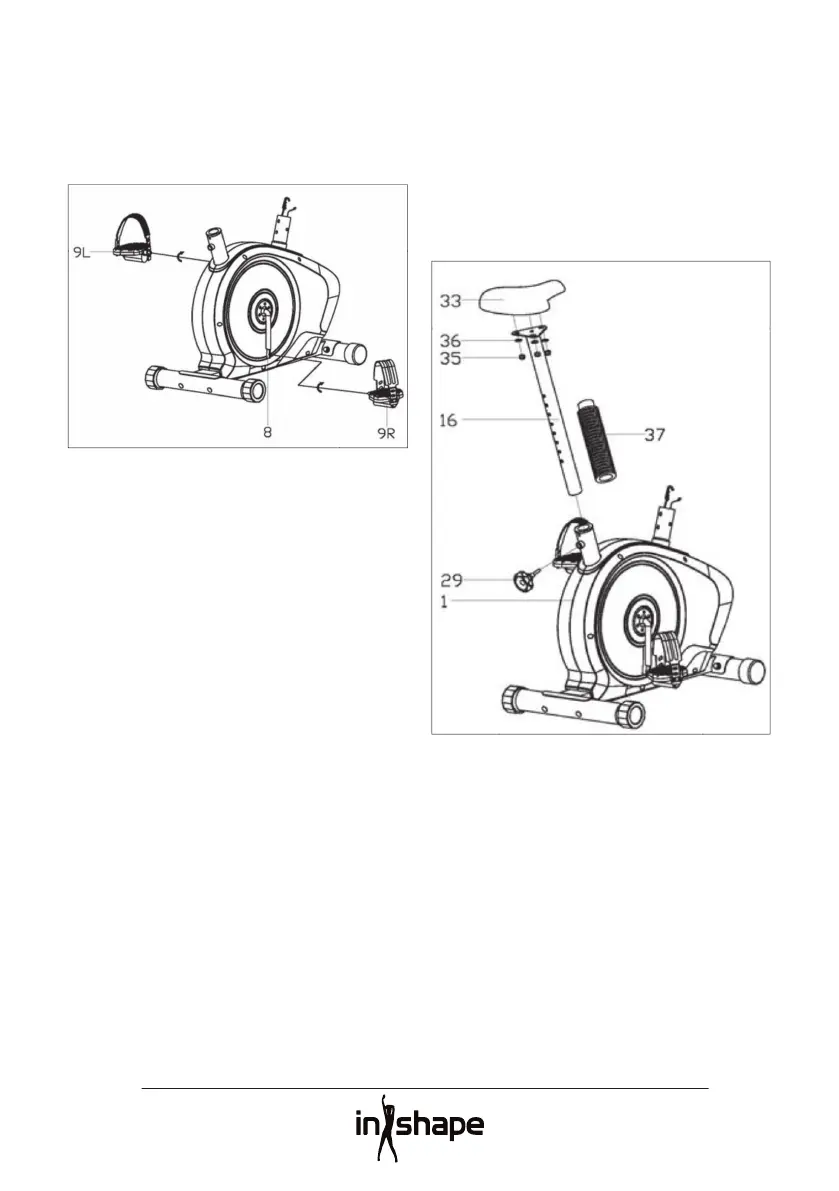 Skru høyre pedal (9R) på høyre pedalarm (8R)