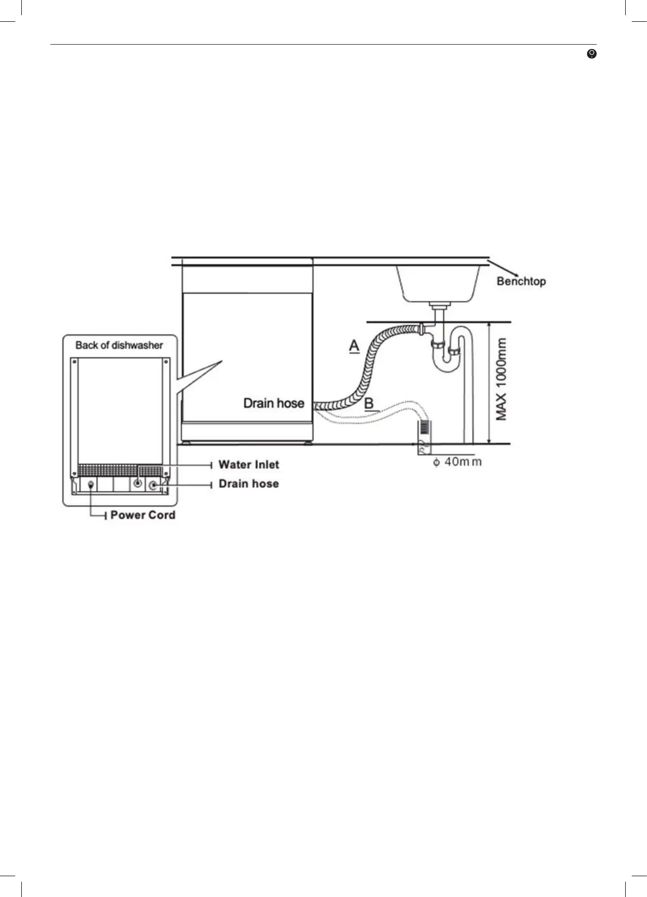 Note. It’s critical for the eective operation of your dishwasher, that the waste pipe is not over-bent or kinked