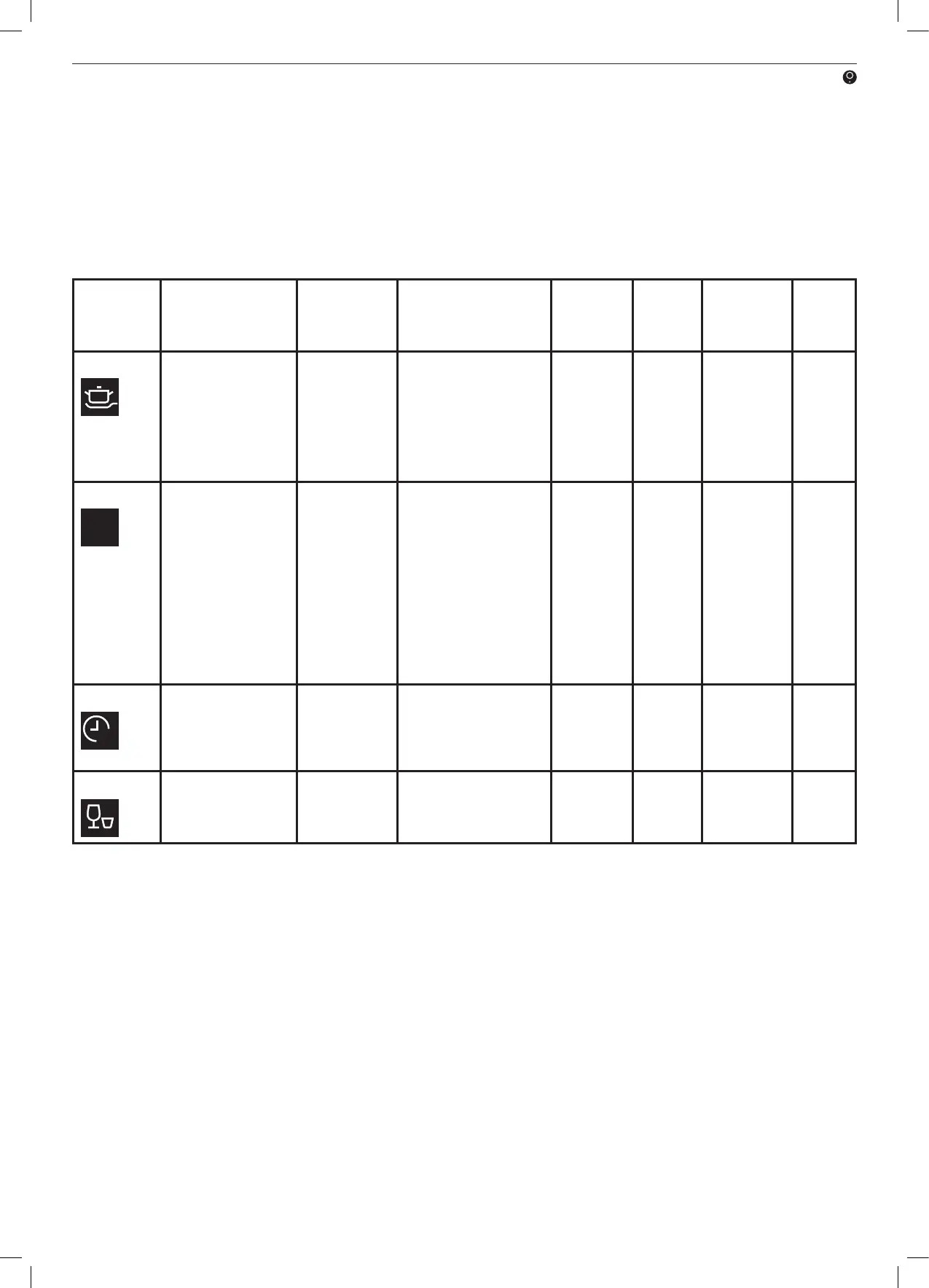 Your dishwasher has the following wash programs. Please refer to the table below to determine which program is