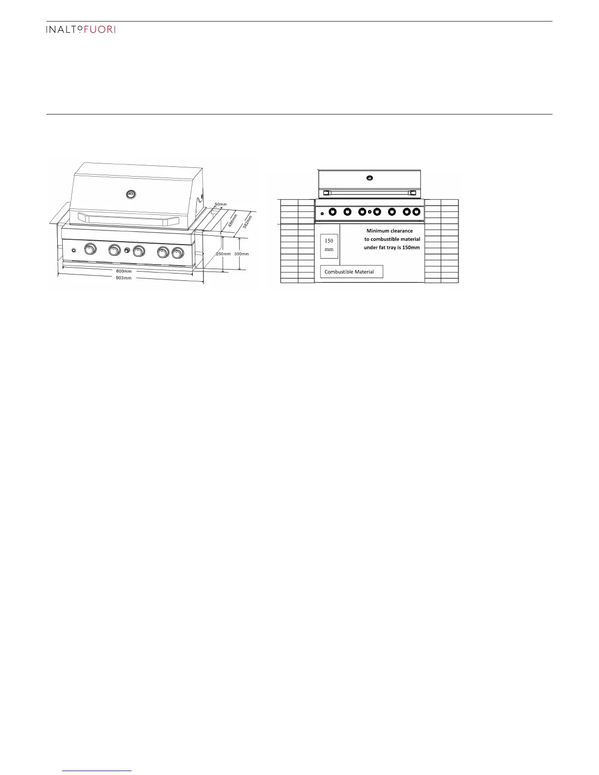 ► Ensure 150mm clearance to combustibles underneath barbecue fat tray.