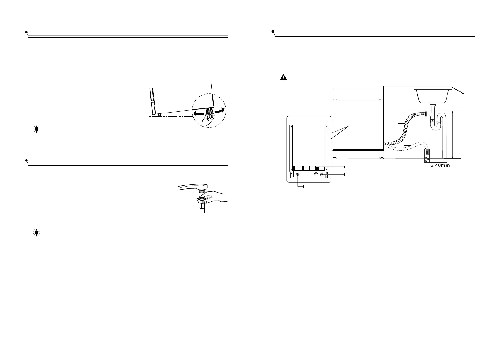 directly into the sink. It will be necessary to drain excess water from hoses into a bowl
