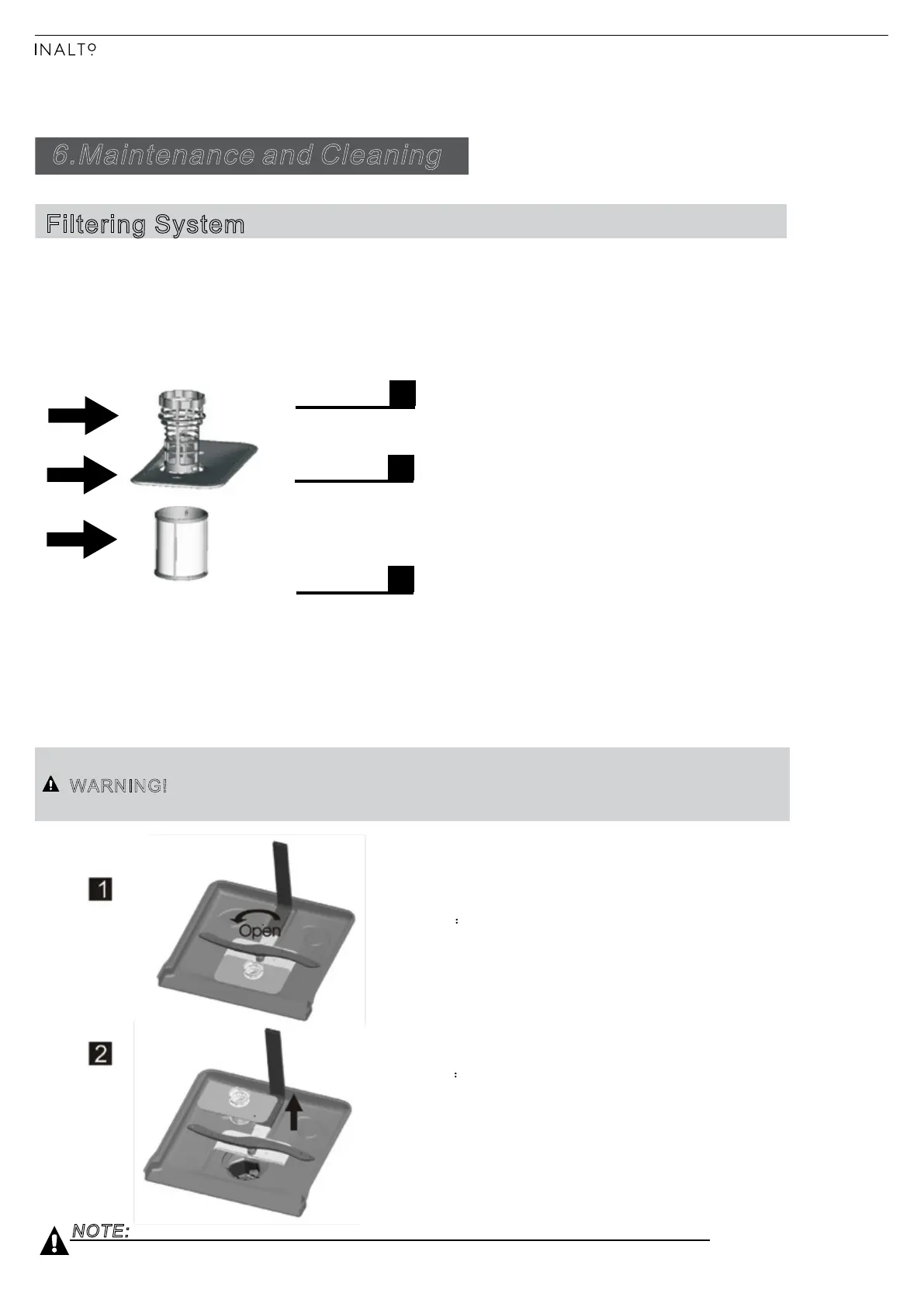 - By unscrewing the coarse filter, you can remove the filter system. Remove any food remnants and