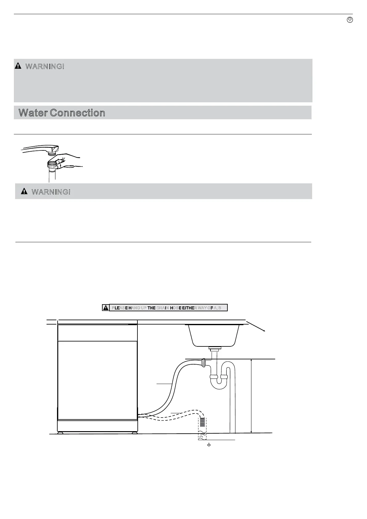 Insert the drain hose into a drain pipe with a minimum diameter of 40mm, or let it run into the sink, making sure to