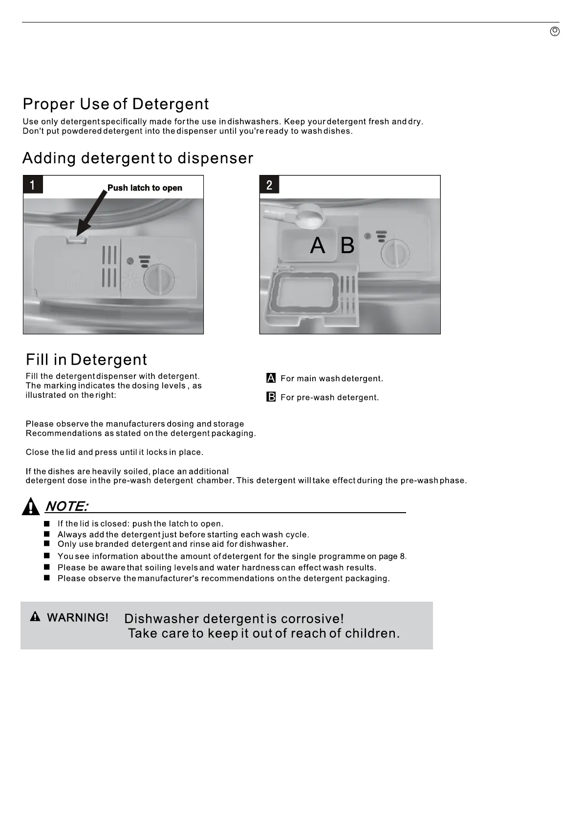 Inalto IDW7S - Proper Detergent Application; Adding detergent to dispenser; Fill in Detergent