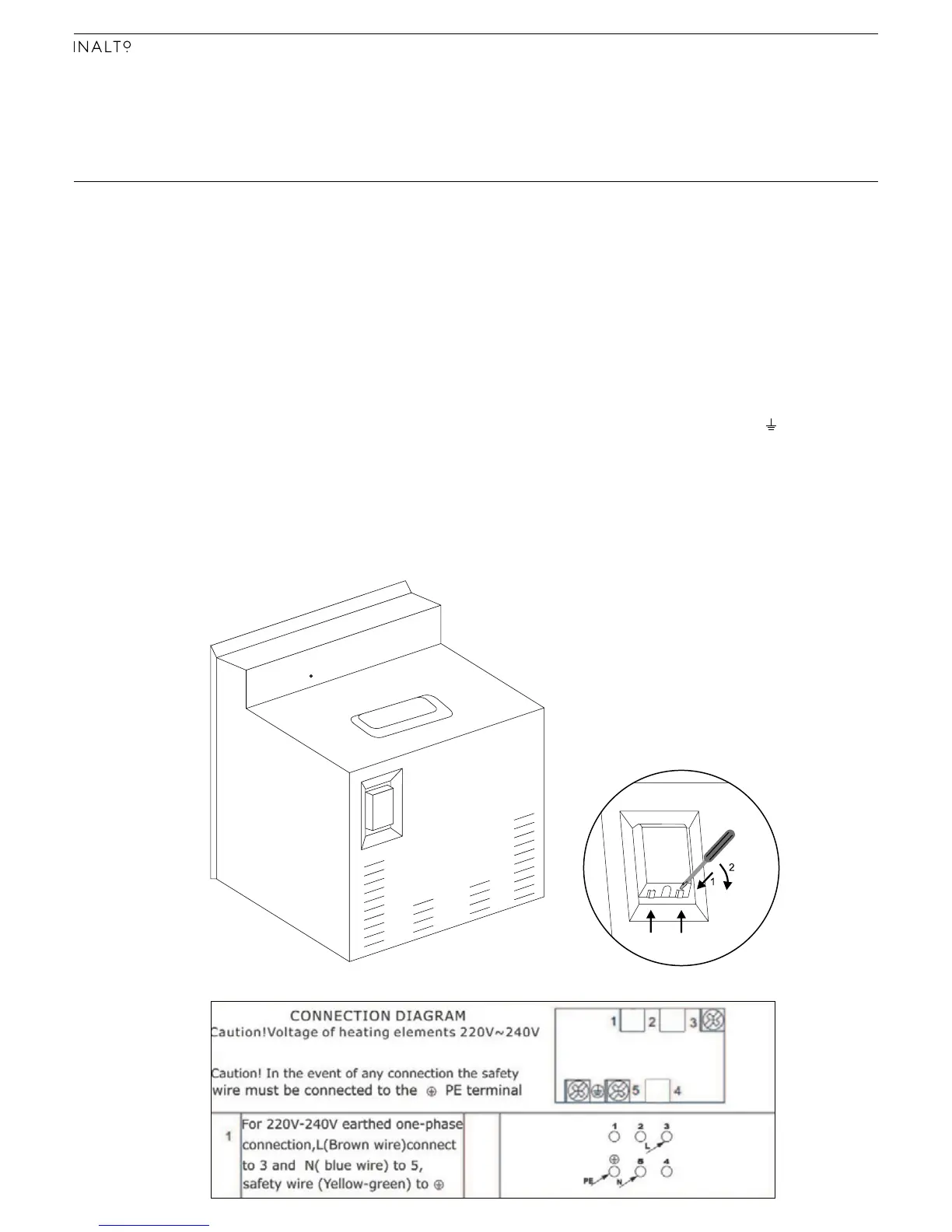 ► The oven is manufactured to work with three-phase alternating current (220V-240V/50Hz). The connection diagram is