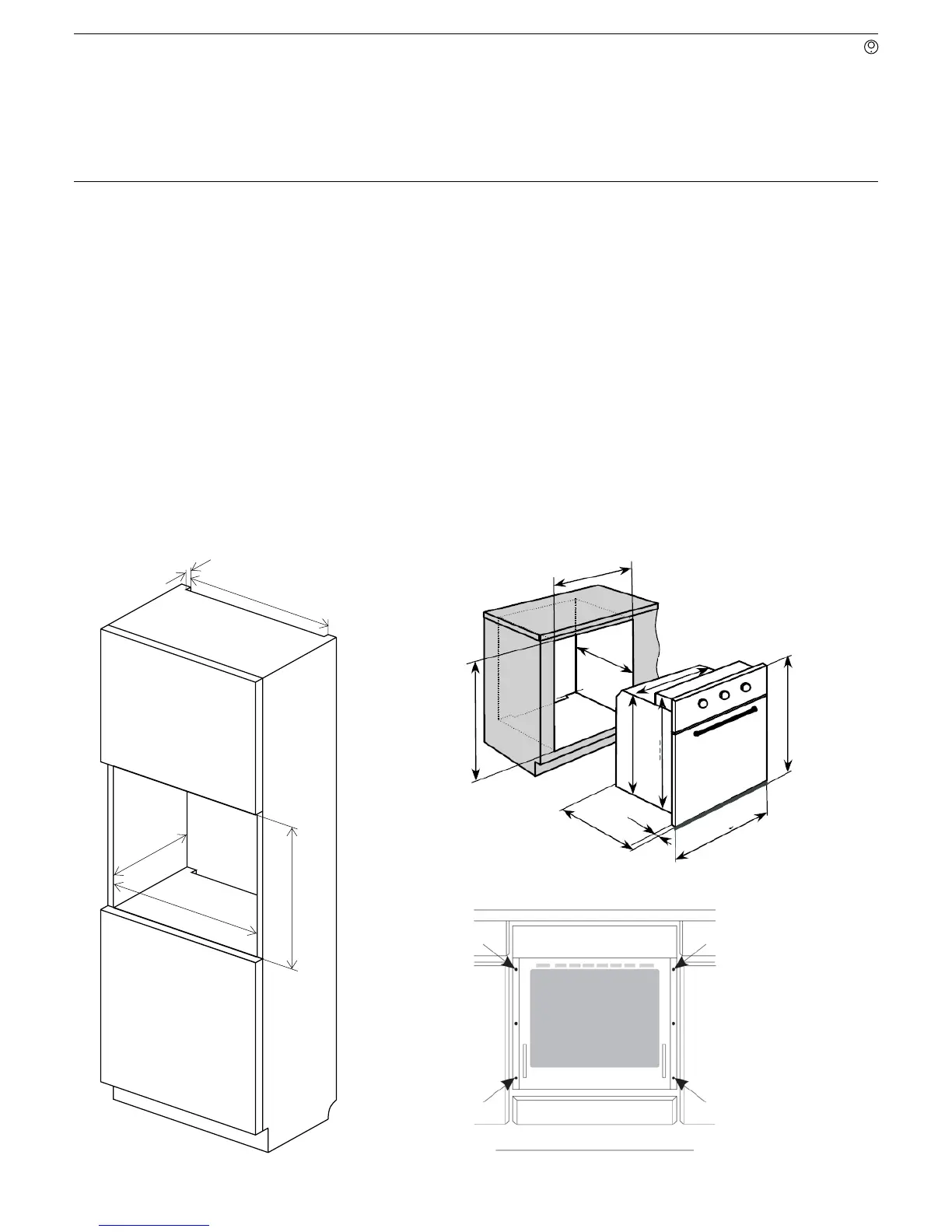 ► Your oven cabinet should be made to suit the following dimensions and can be either a tall or underbench cabinet to