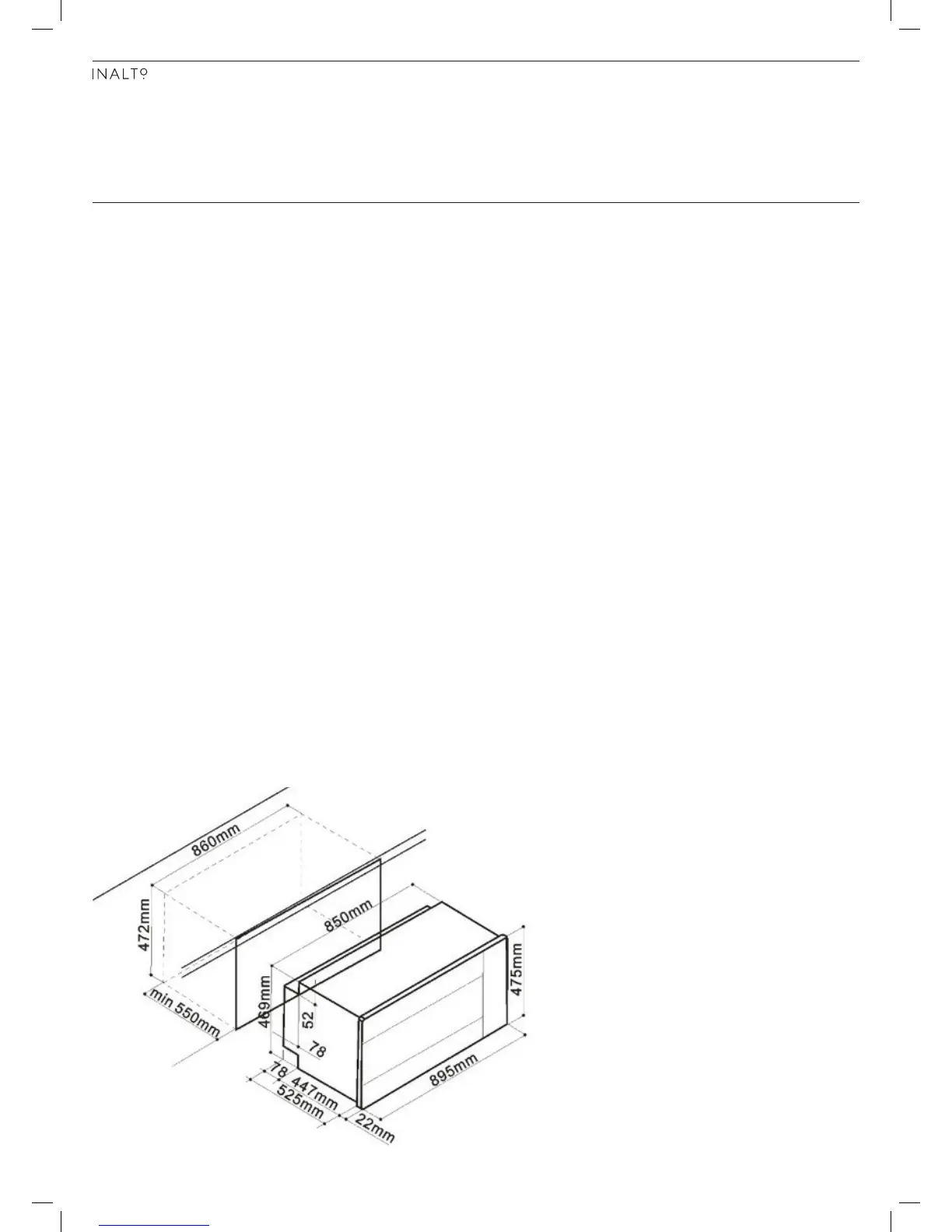 ► Your oven cabinet should be made to suit the following dimensions and can be either a tall or underbench cabinet to
