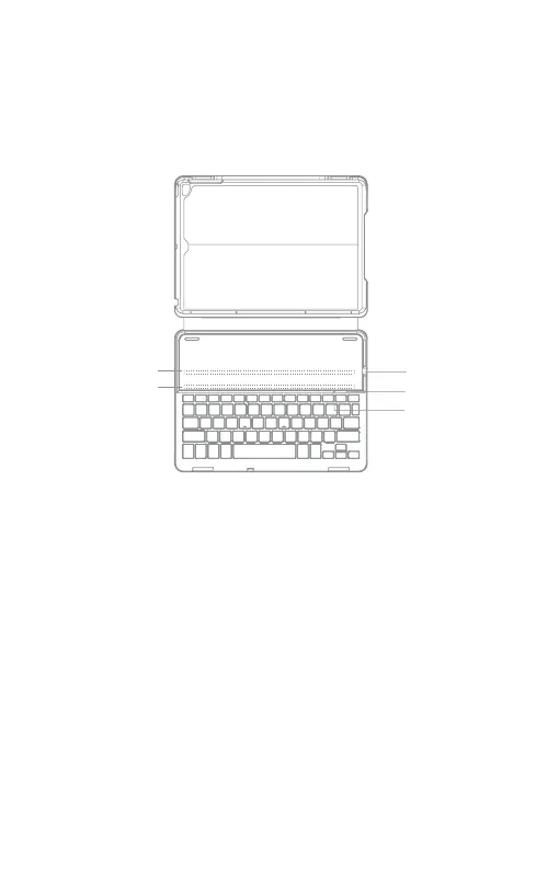 ① パワースイッチ : お使いの iPad を内蔵磁気ストリップ 1 あるいは磁気スト