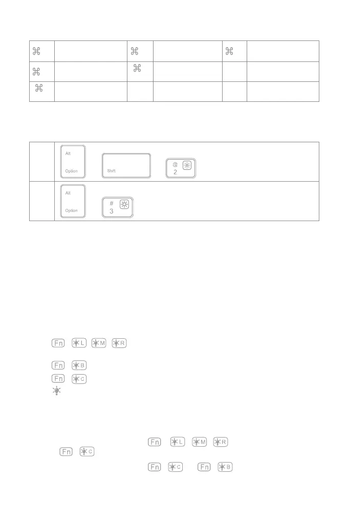 4) The color breathing eects generated by + and + cannot be switched seamlessly,