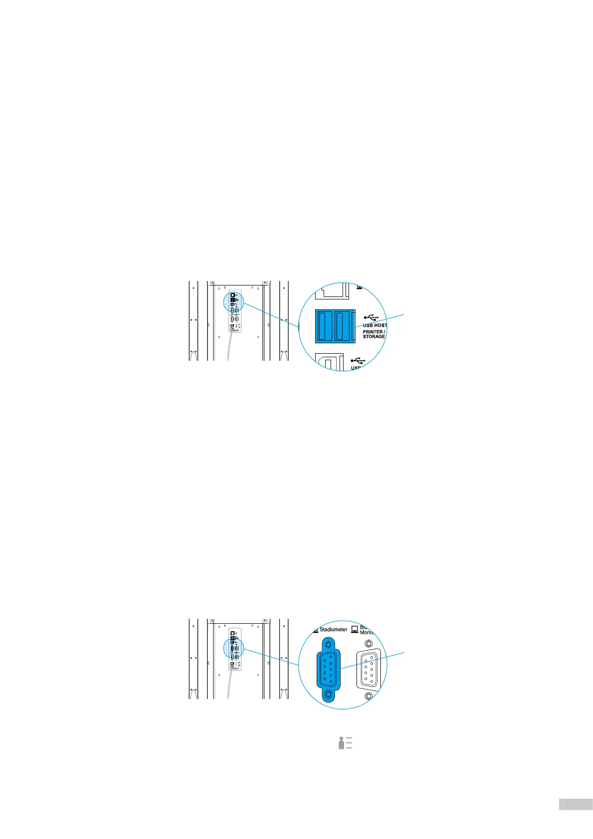 Connect the serial cable supplied with the stadiometer to the Stadiometer 9-pin serial terminal on the rear of