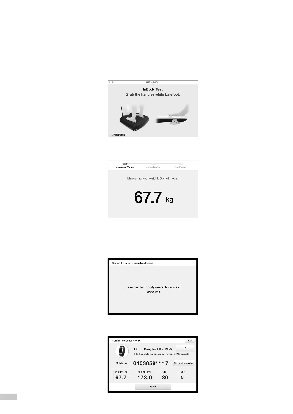 Personal information is received from the InBodyBAND and displayed on the screen automatically.
