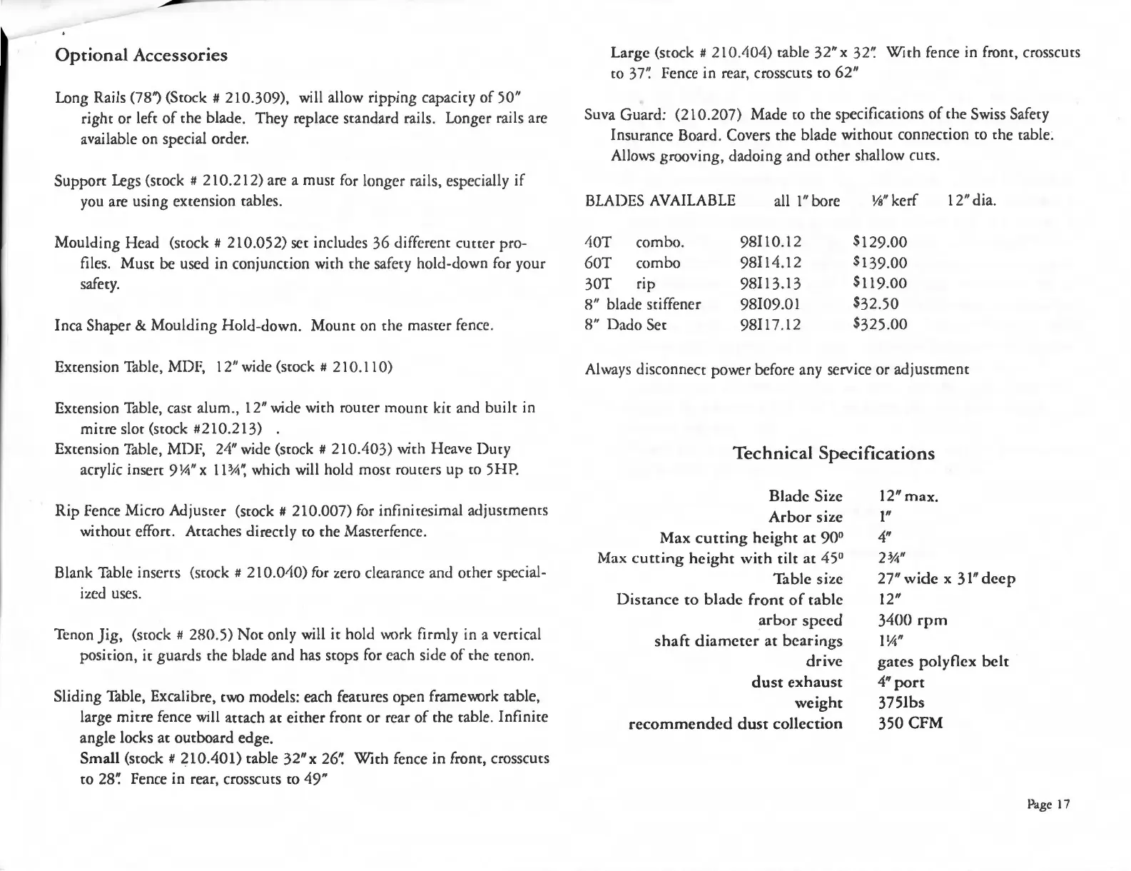 BLADES AVAILABLE all