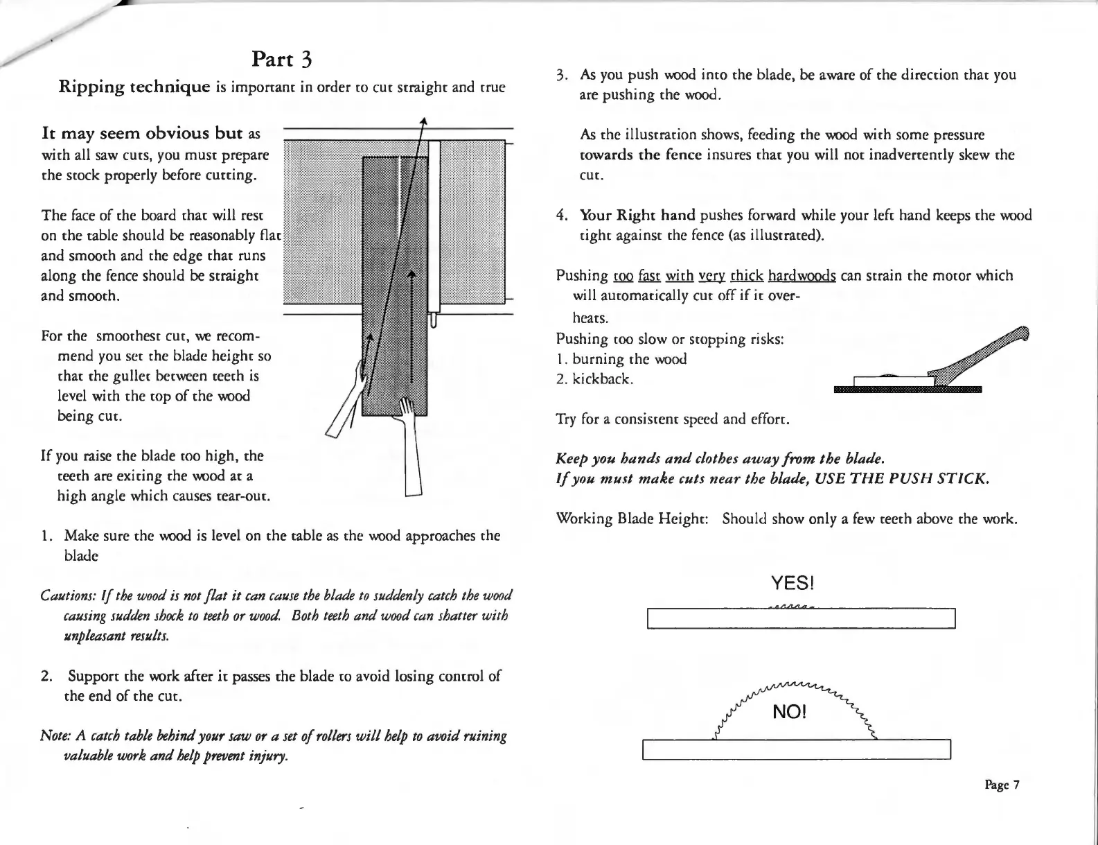 Working Blade Height: Should show only a few teeth above the work.