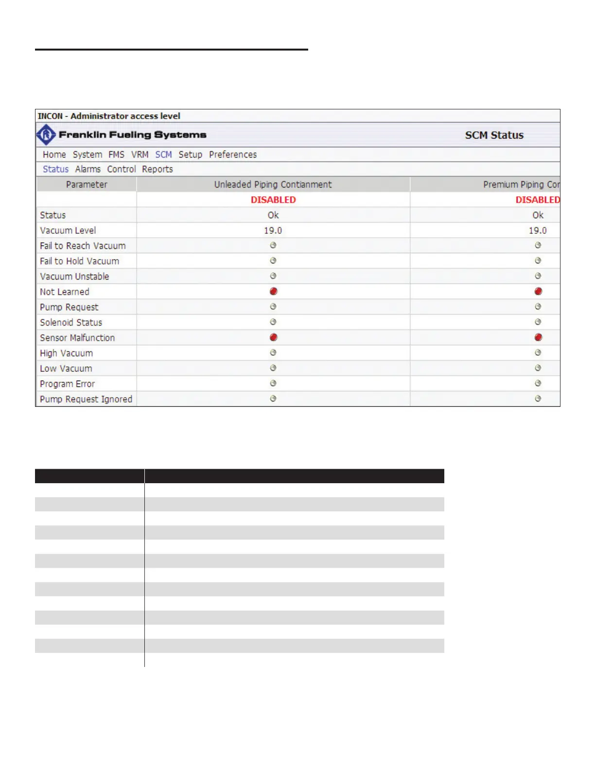 To get to the SCM Status or Control screens, go to SCM > Status (Summary) or SCM > Control (Containment).