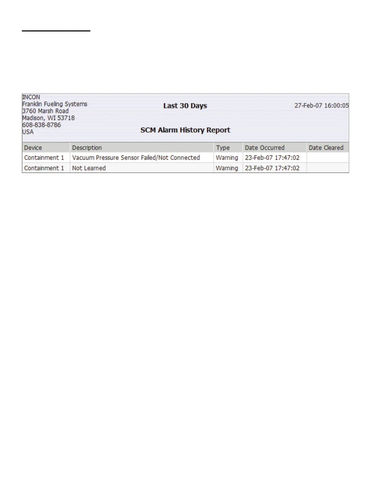 SCM Alarm Reports include any SCM alarms or application events that occurred within the date range chosen by the