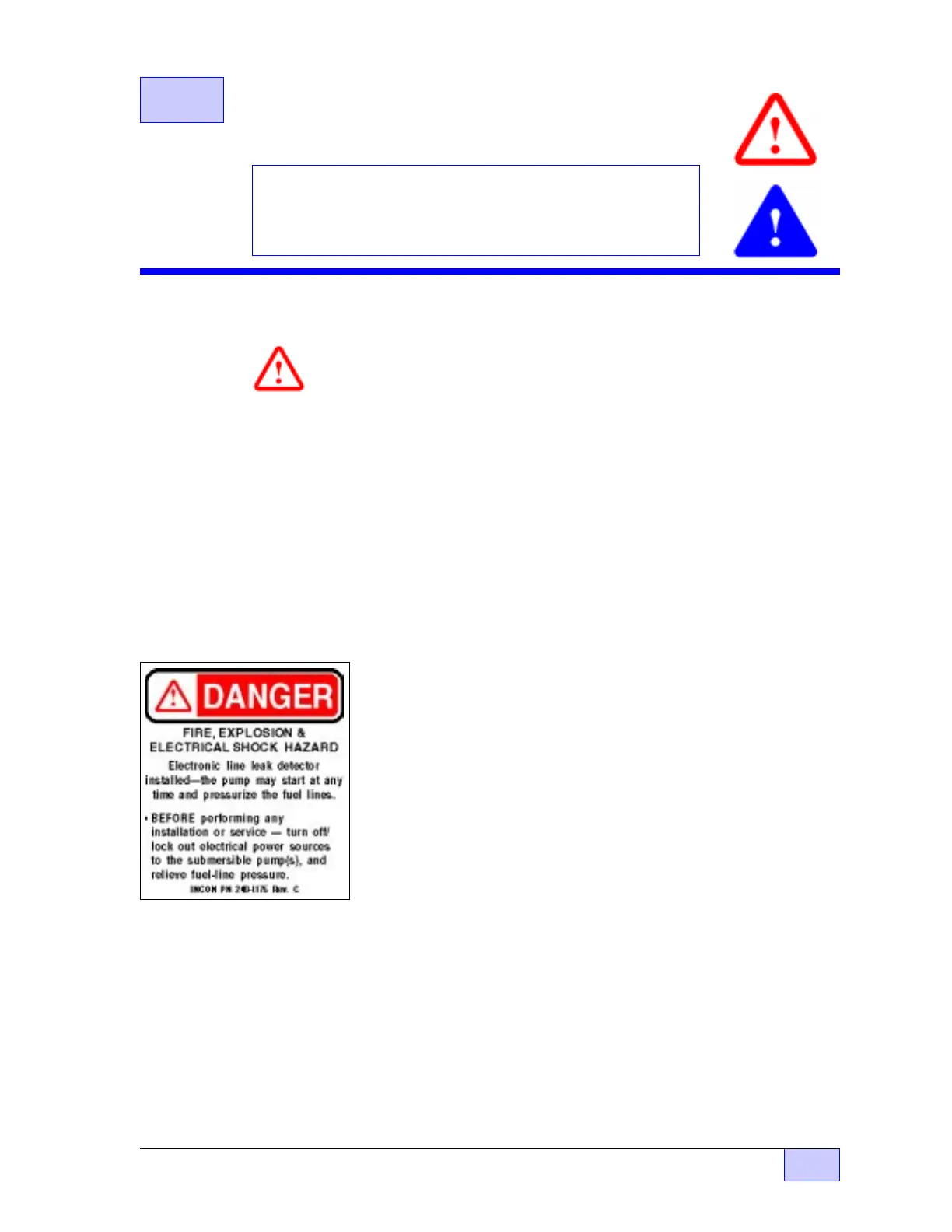 INCON Danger stickers (see above left) are supplied with the