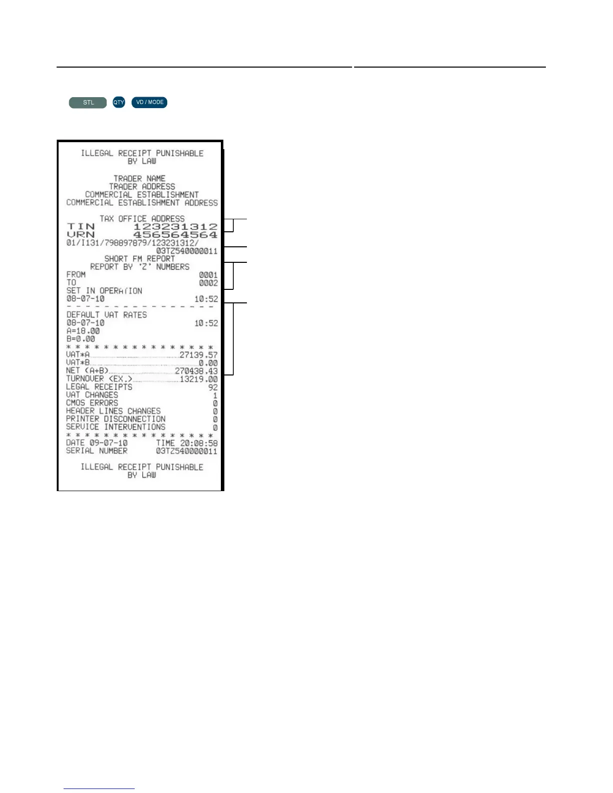VAT rates, date (ddmmyy) and time (hh:mm) of