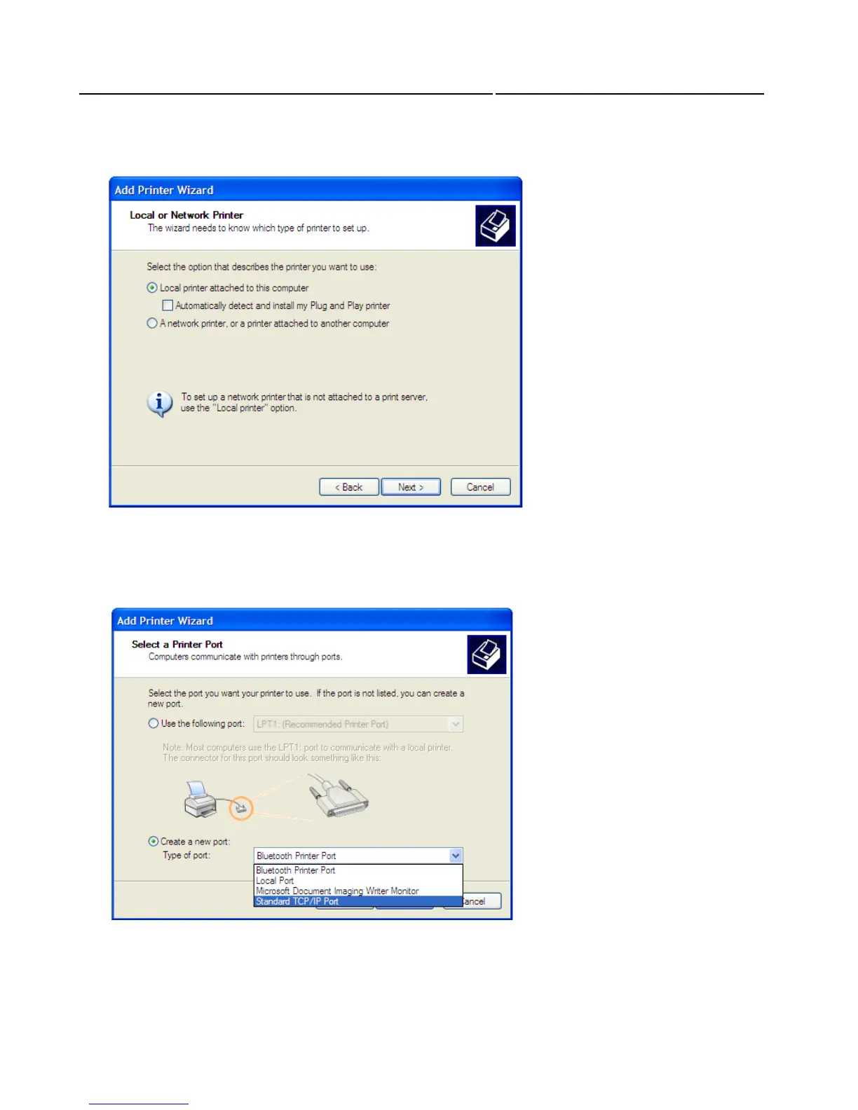 port”, and then for the “Type of port” select “Standard TCP/IP Port”. Click “Next” to continue.