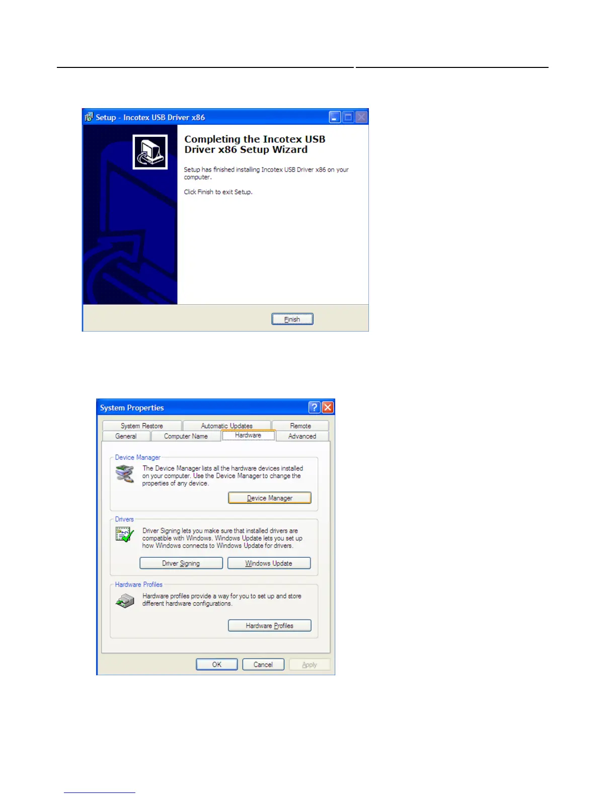 If the driver installation is successful a device called “Incotex” should have appeared with two objects