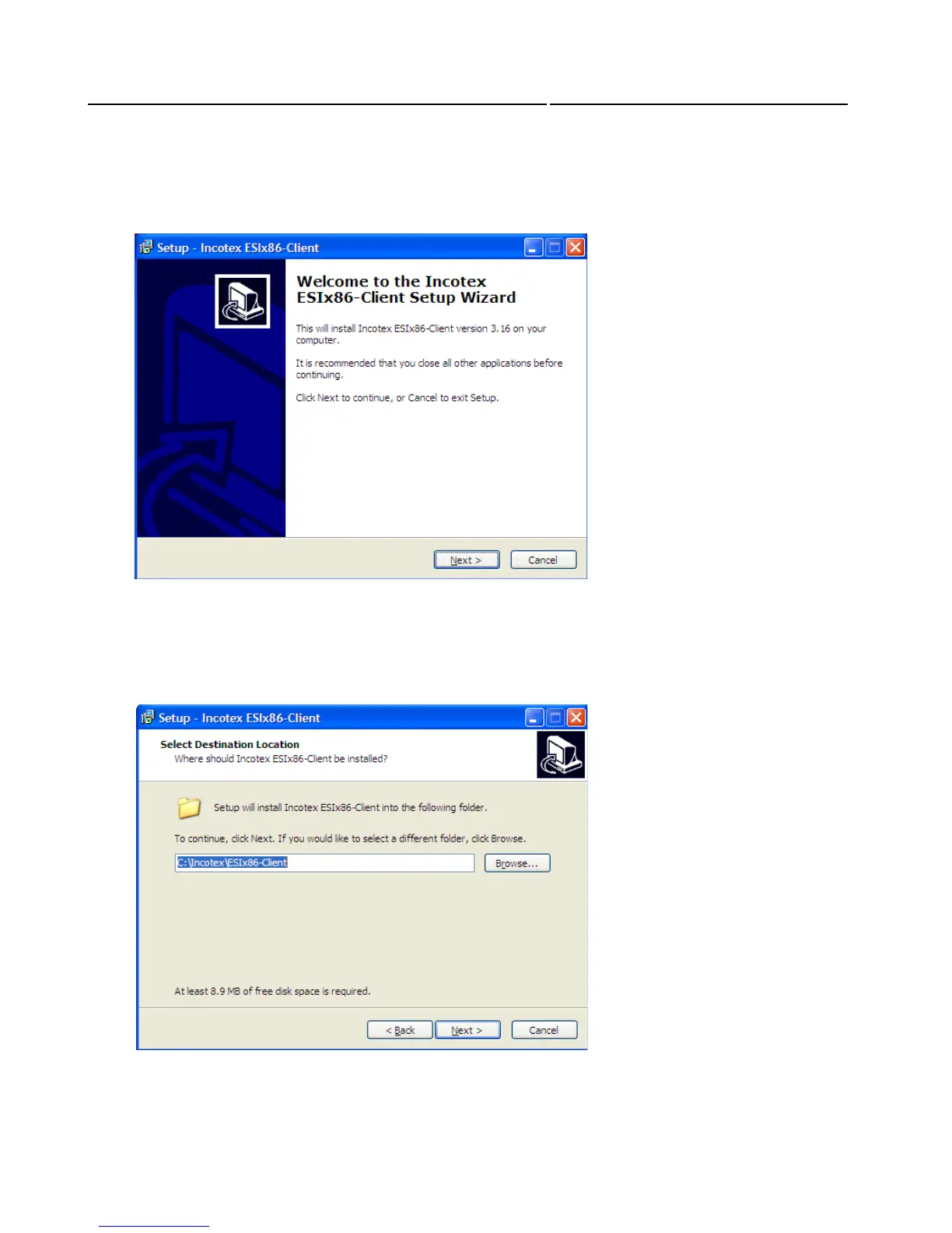 in C:\Incotex\ESIx86-Client. To confirm the installation in this directory, click Next. If prefer another
