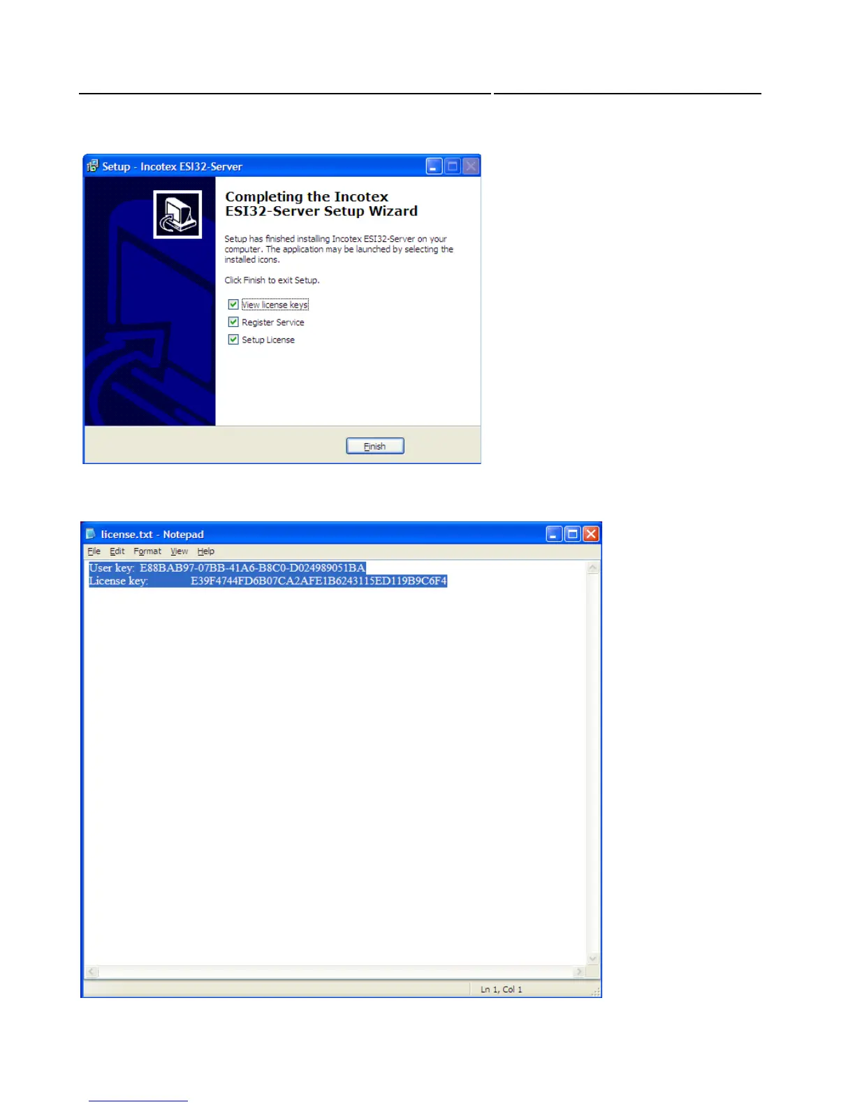 This window contains user and license keys.