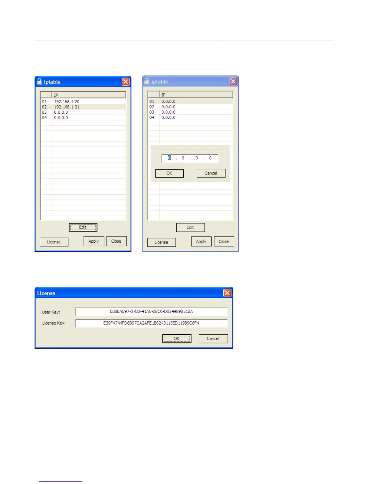 Shows the unique user key and license key of the product.