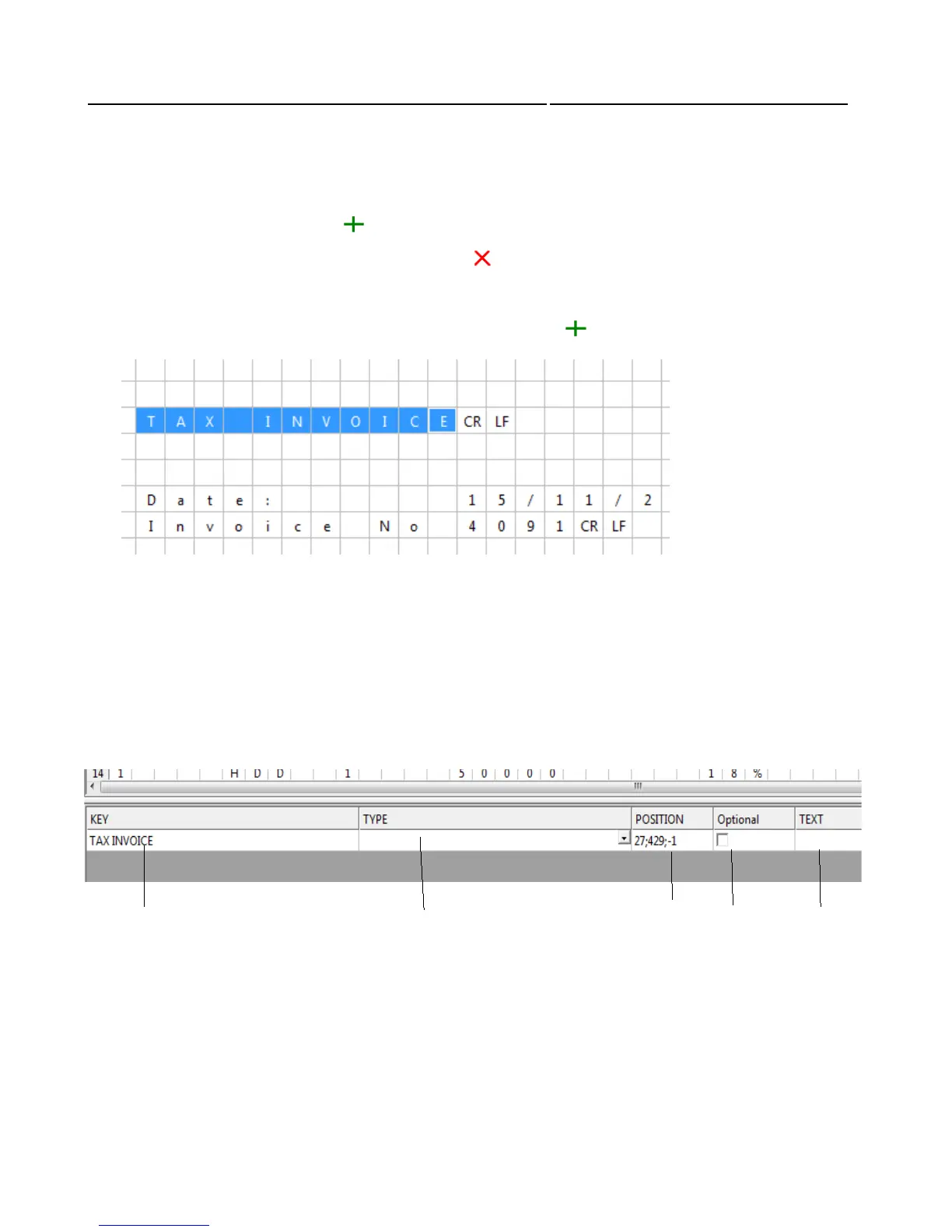 of the “INVOICE” parameter (in the “KEY” field). When this KEY word has a value connected to it,