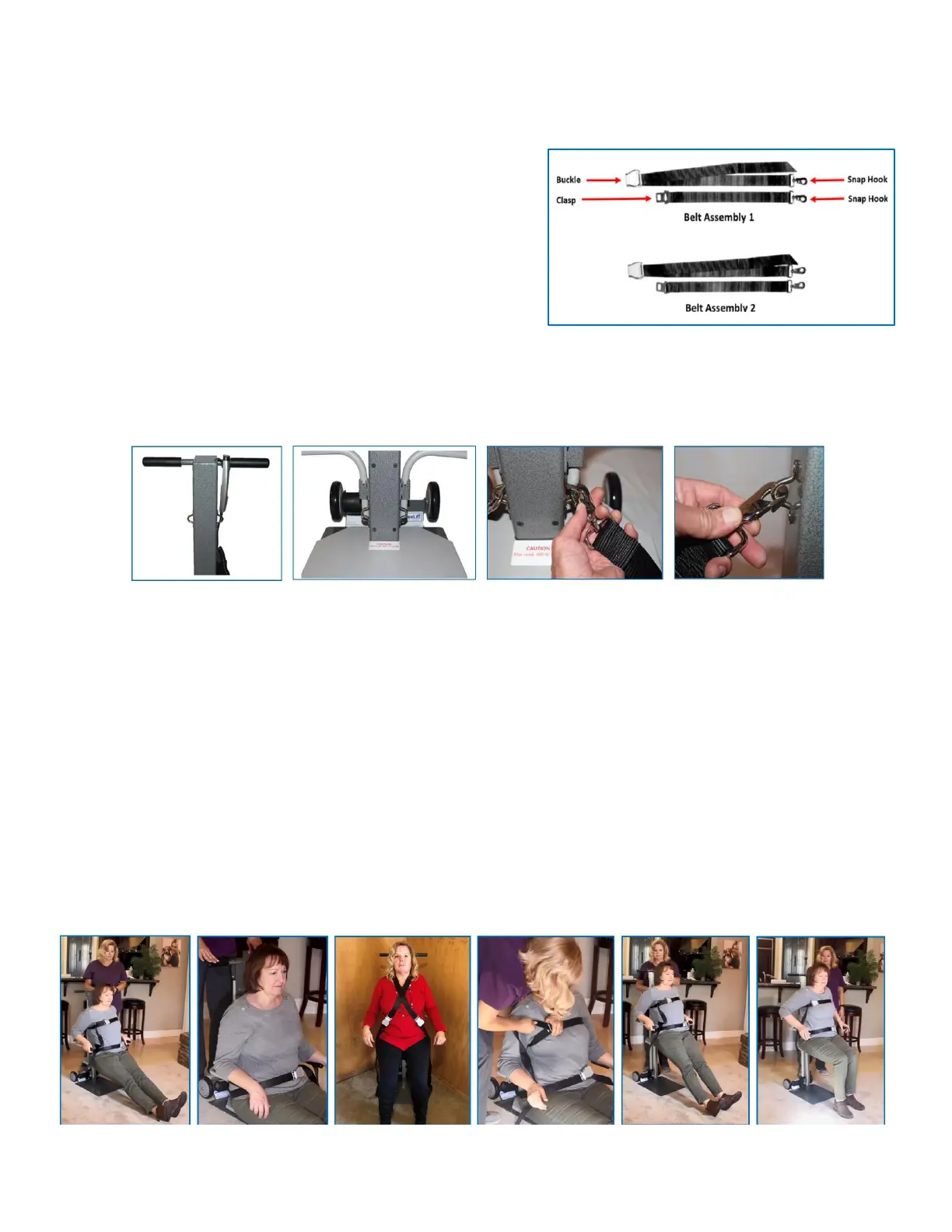 column), using the snap hooks at the end of each belt assembly. The upper belt assembly and