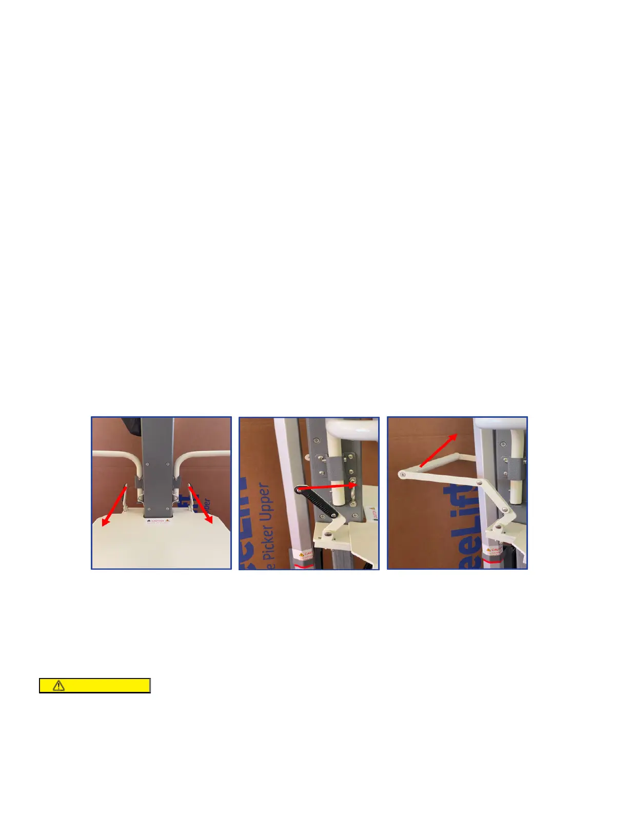 The Seat Locks MUST be engaged to raise a person from the floor or for transfers