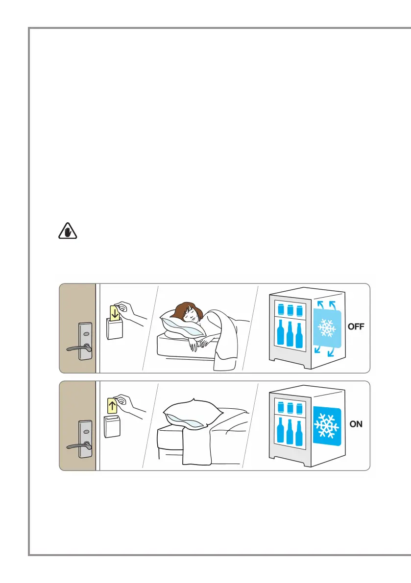 habitación, por lo que el compresor del minibar se detiene (los productos conservados en el mini-