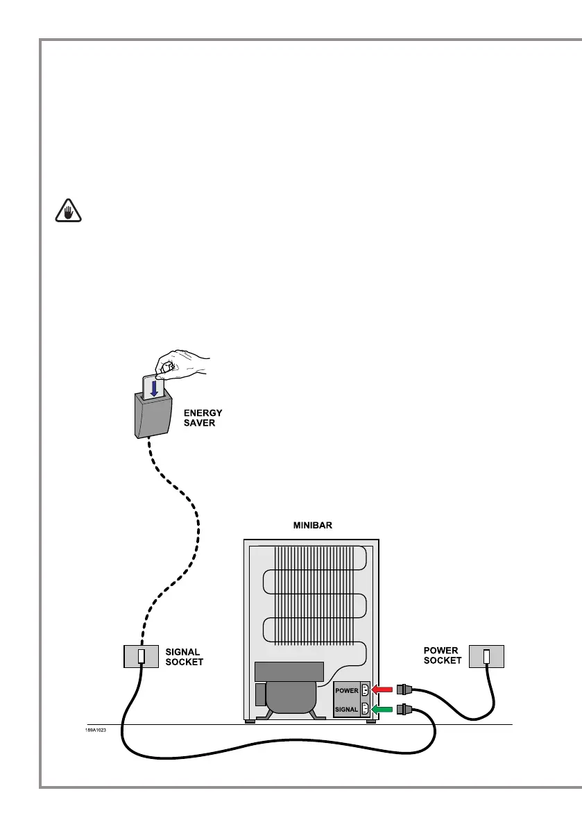 Connect the “POWER” plug to the socket in the room specically for the Minibar (socket not connected to