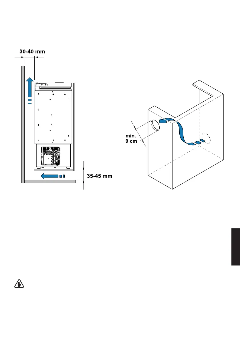 siirtyy jääkaapin takaa ja että lämmin ilma voi tulla ulos yläosasta tai sivuilta.