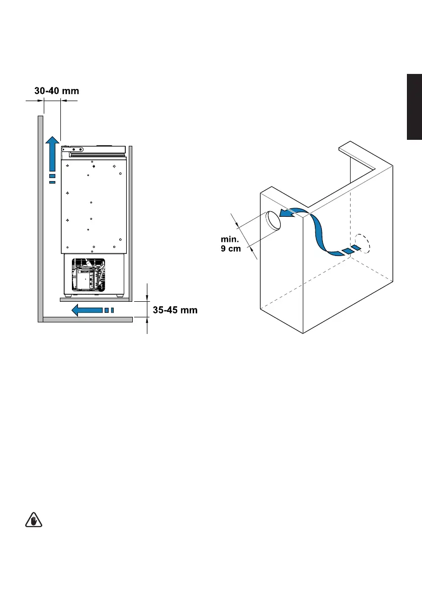 fresh air can enter at the bottom and pass behind the refrigerator, with the hot air being allowed to escape from the top or