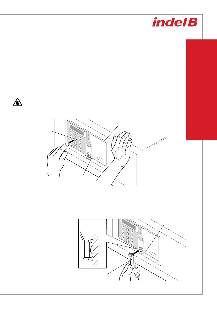Para cerrar la caja fuerte, mantenga la puerta cerrada bajo presión e introduzca la clave en el