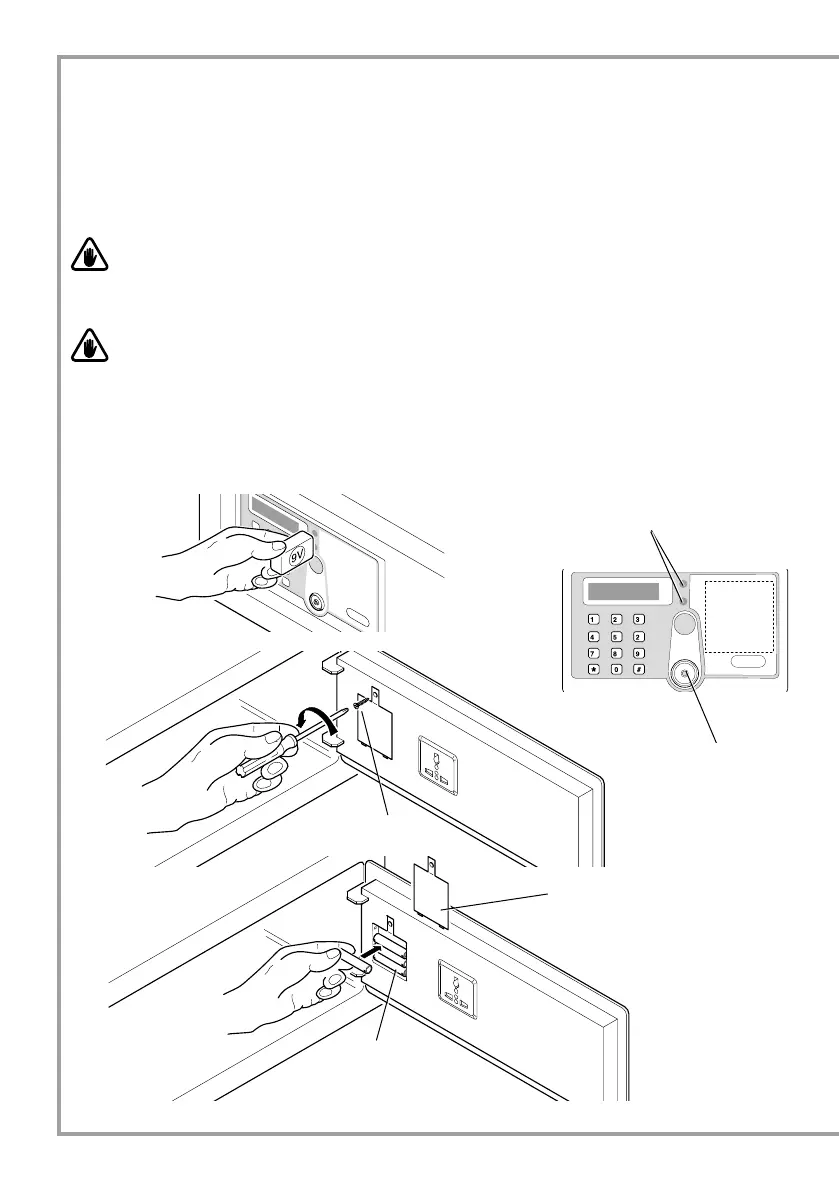 placer une pile de 9V dans les deux contacts à droite de l'écran, pour fournir temporairement le coffre-fort