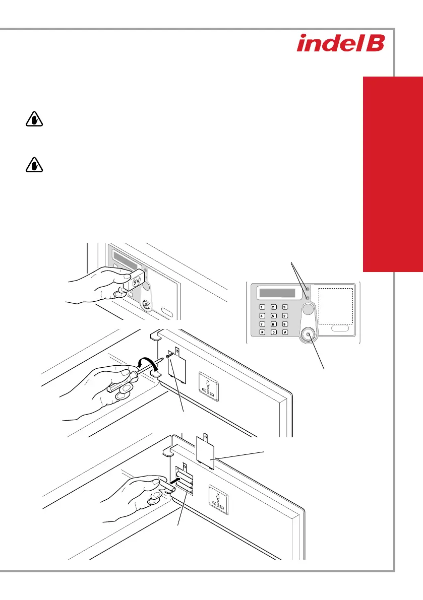 eine 9-V-Blockbatterie an die beiden Kontakte rechts vom Display, um den Tresor notdürftig zu