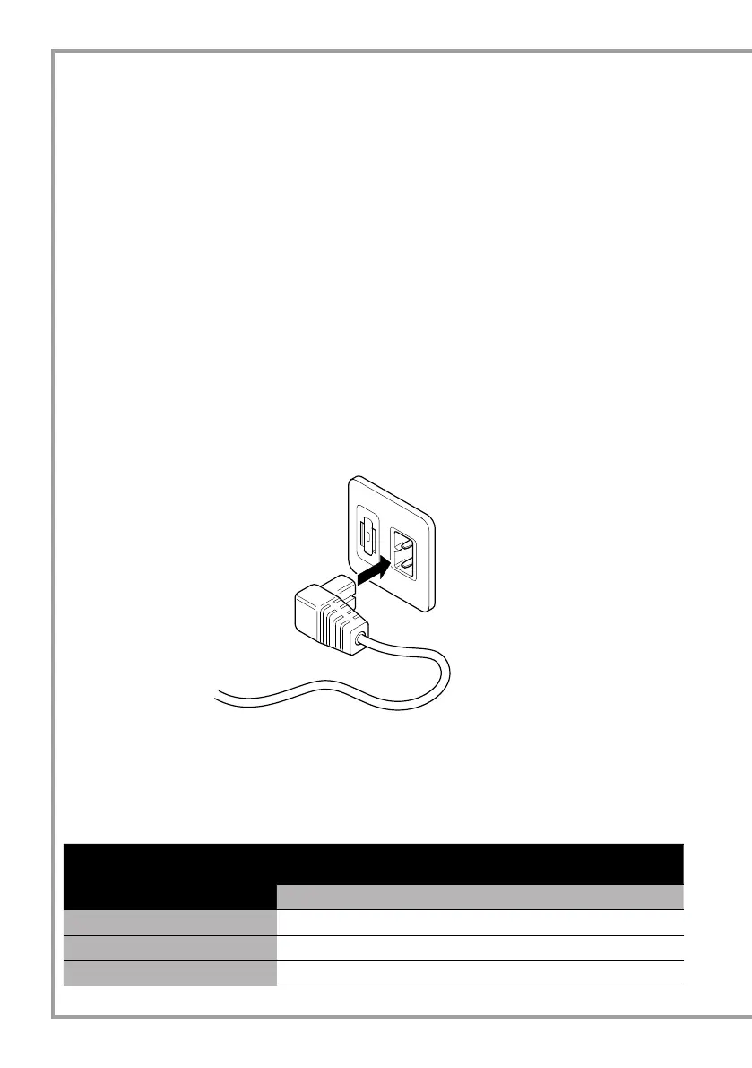 - If the supplied power cable is not used, see the table containing the information related to the cable