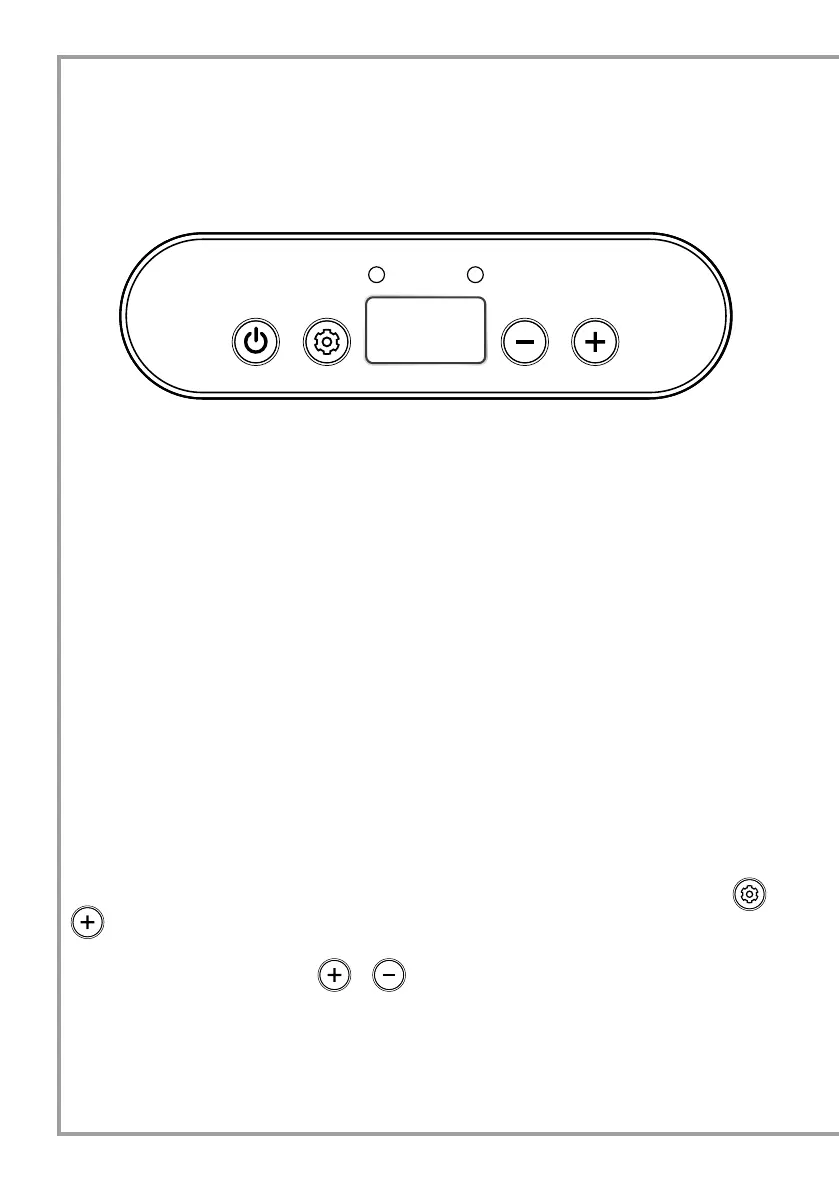 - Appuyer sur le bouton + et - pour régler la température. Appuyer sur le bouton + pour augmenter la