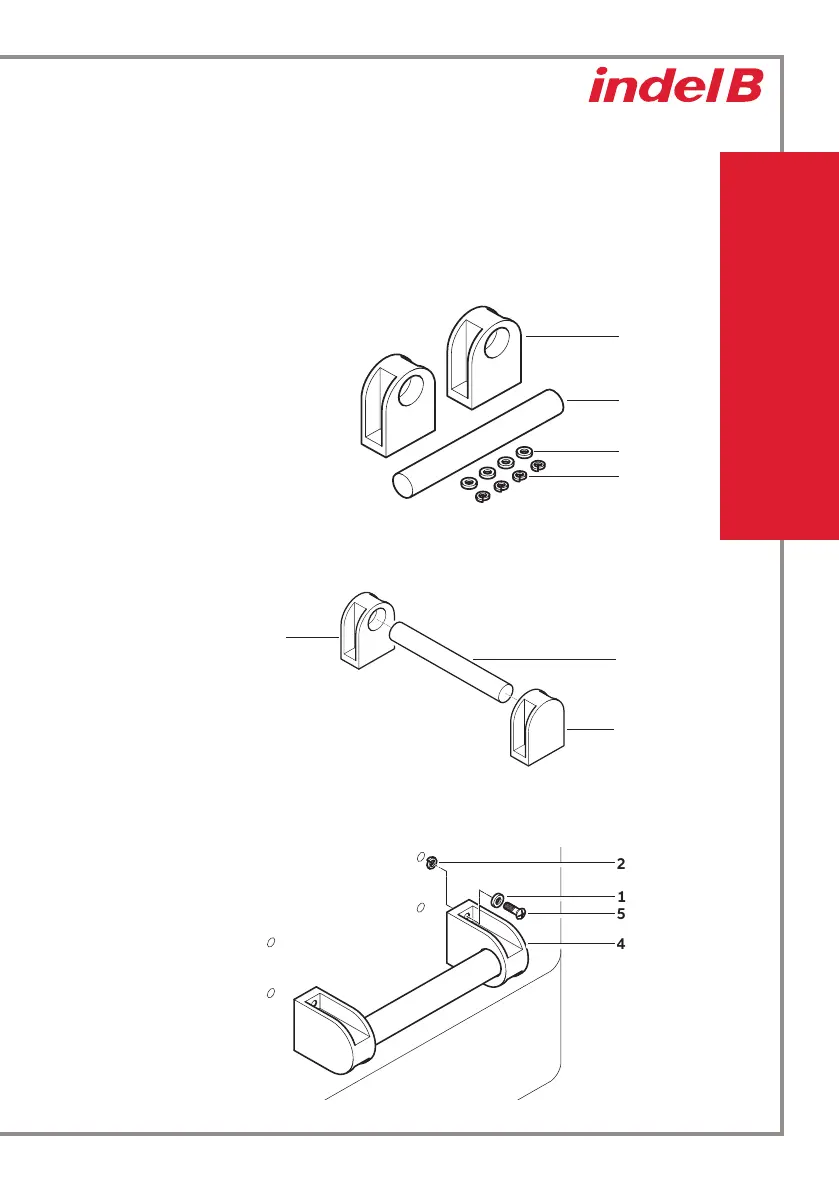 Inserte el tornillo (5) en el tirador (4) y en su extremo inserte también la arandela de resorte partida (2).