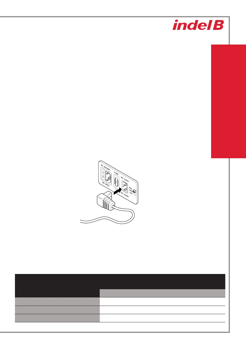 - Brancher le câble d’alimentation sur un courant continu de 12 V.