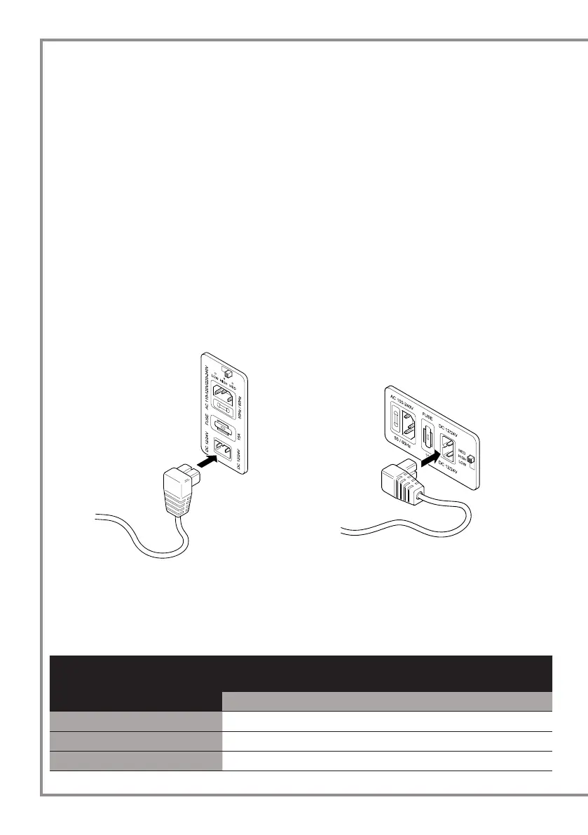 - Brancher le câble d’alimentation sur un courant continu de 12 ou 24 V.