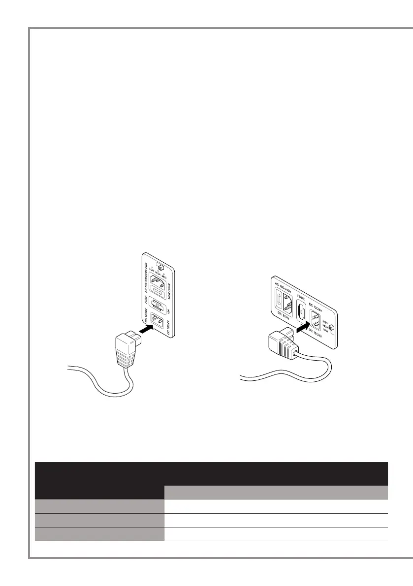 - Ligue o cabo de alimentação a uma corrente directa ou a um gerador de 12 ou 24 V CC.