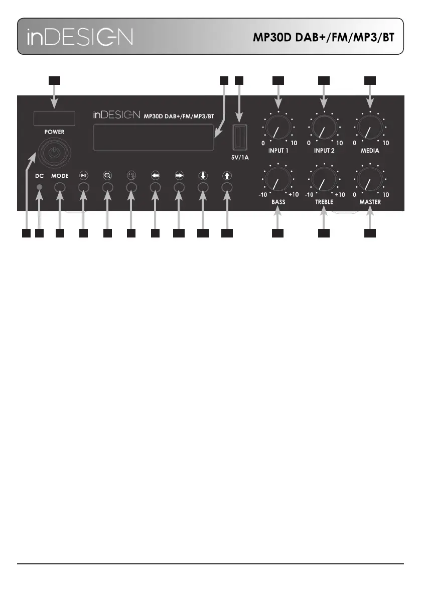 8. DAB+ / FM: Hold to store station to