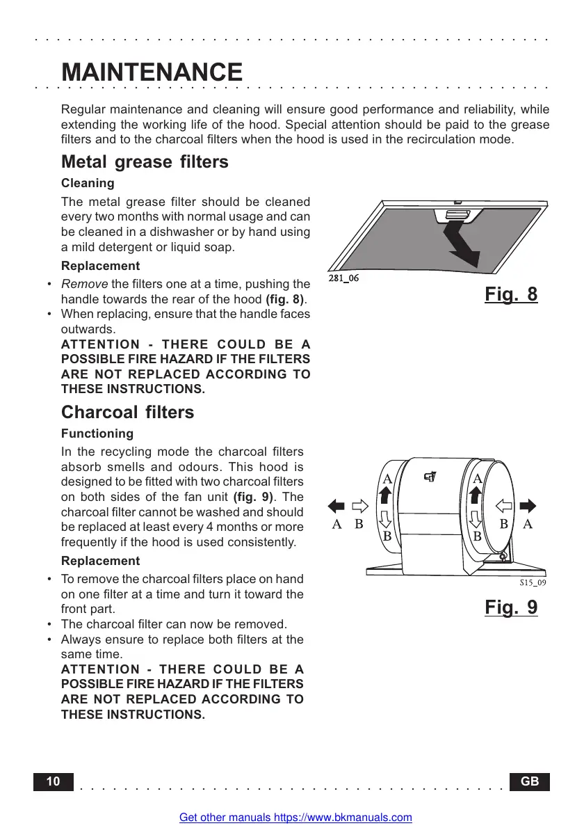 filters and to the charcoal filters when the hood is used in the recirculation mode.