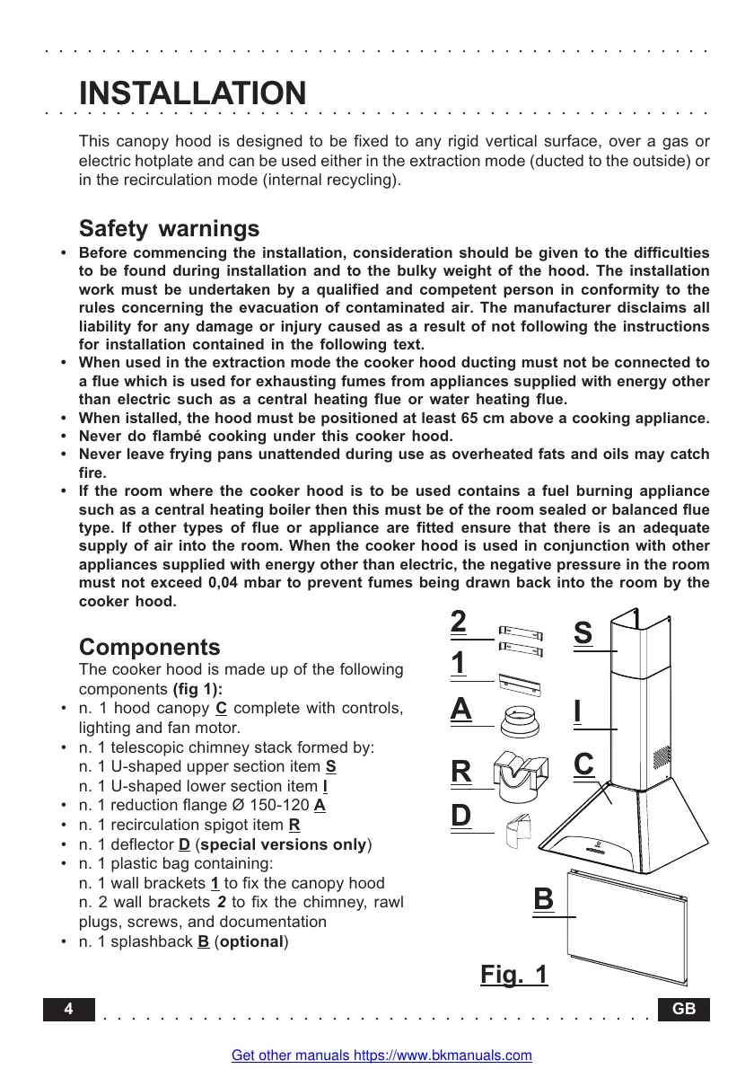 • If the room where the cooker hood is to be used contains a fuel burning appliance