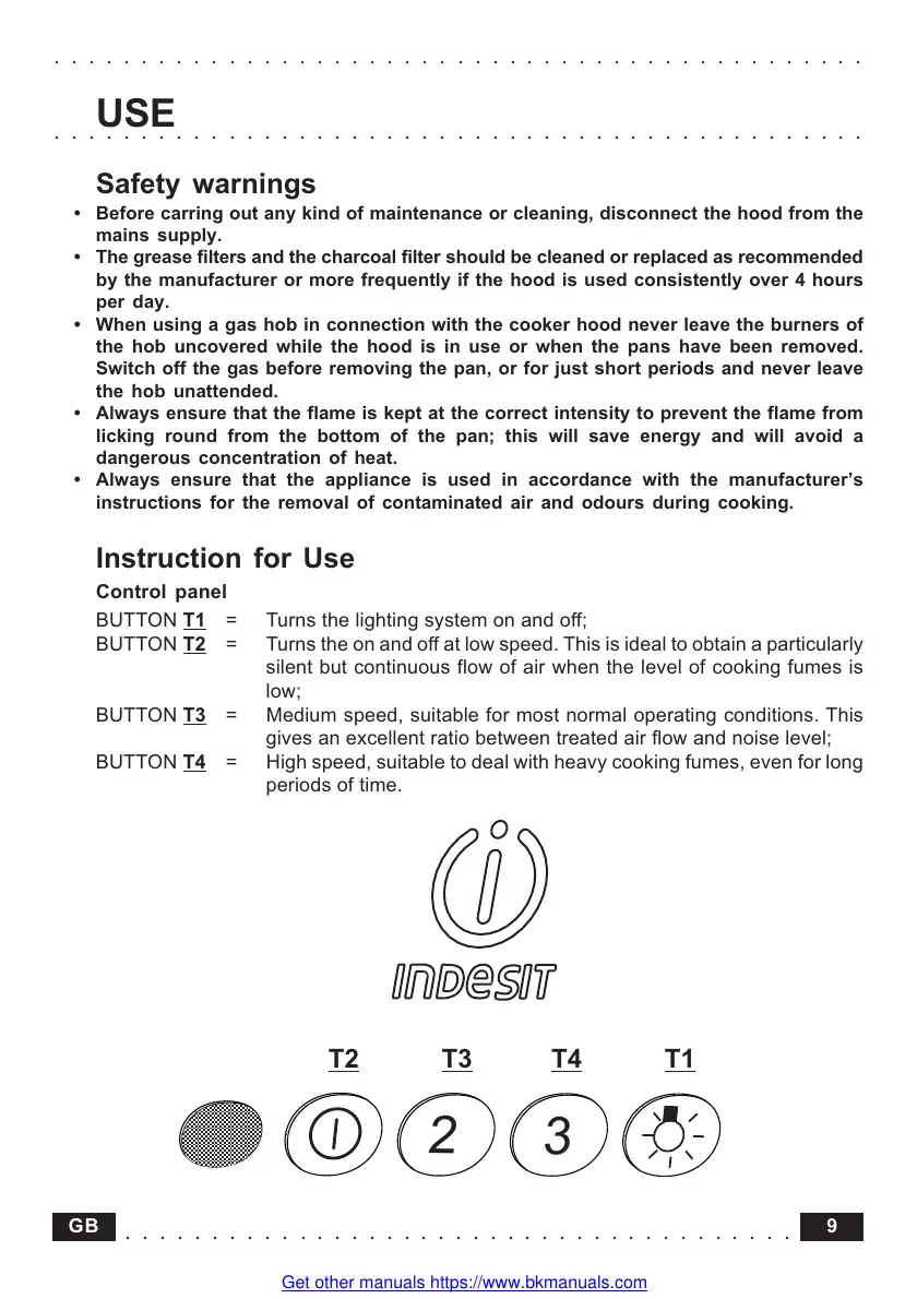 BUTTON T4 = High speed, suitable to deal with heavy cooking fumes, even for long