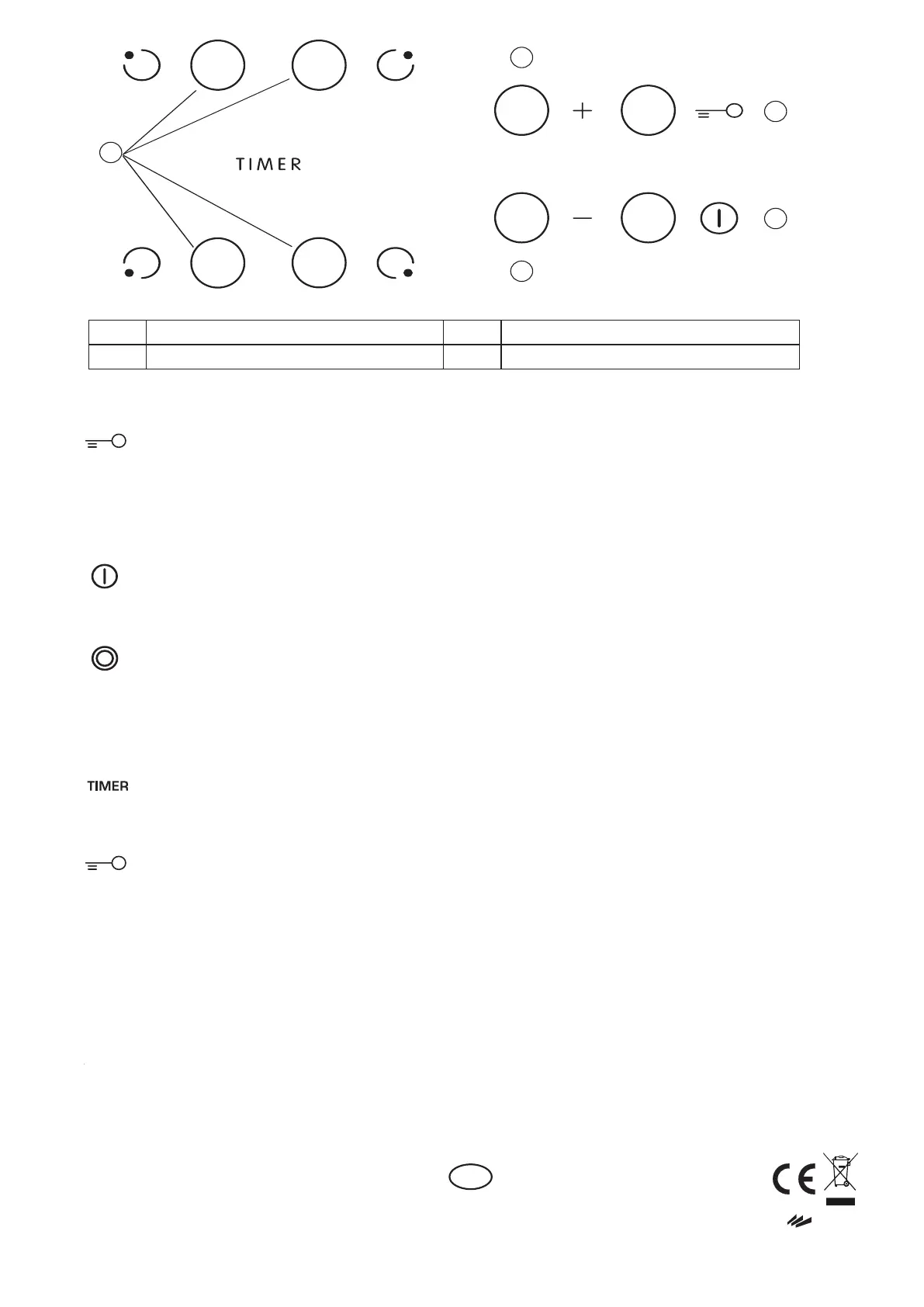 B Cooking zone and timer selection Heat setting increase and decrease
