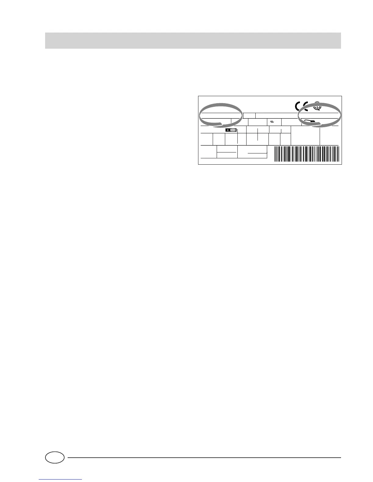 (Mod.) och andra tillhörande nummer (S/N) angivet på märks-