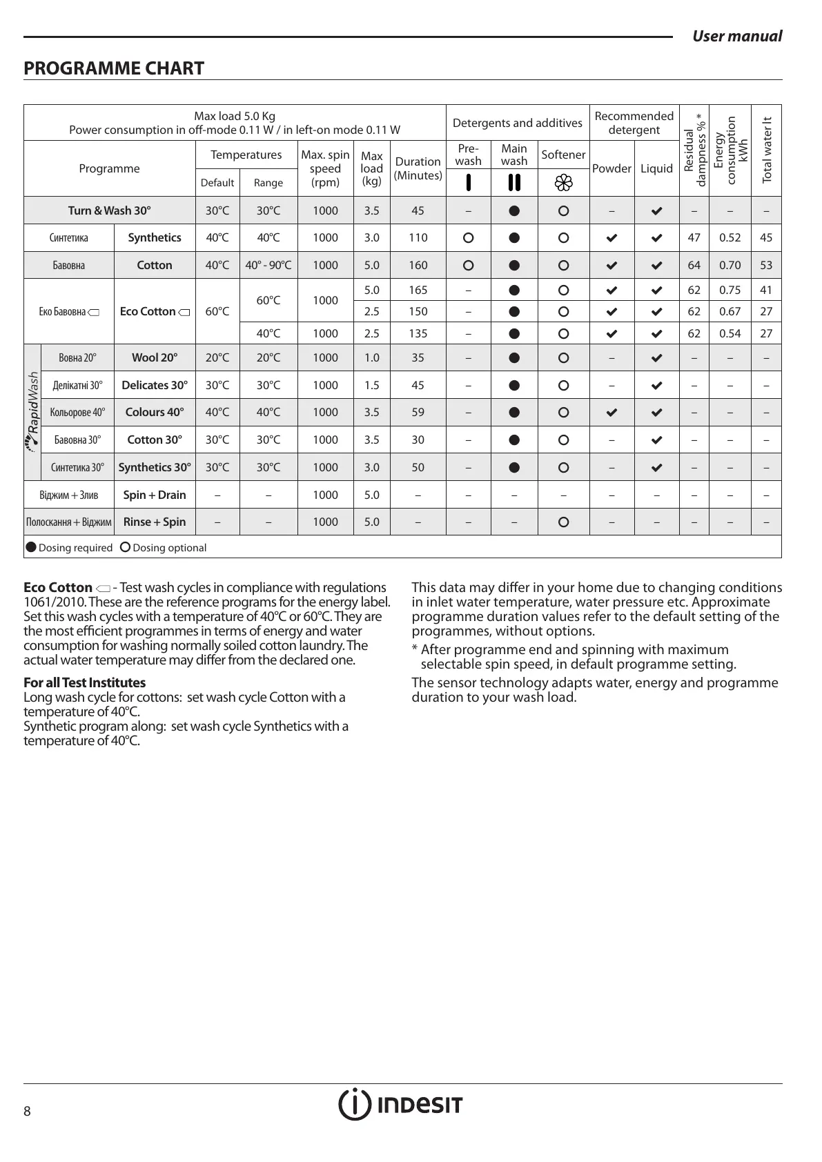 consumption for washing normally soiled cotton laundry. The
