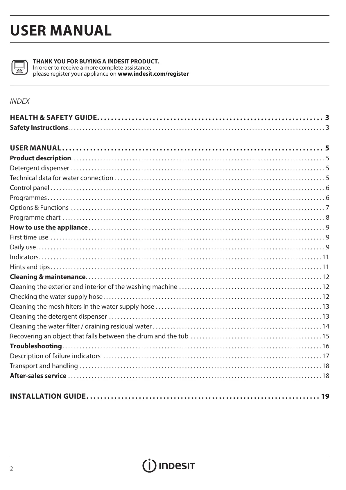 THANK YOU FOR BUYING A INDESIT PRODUCT.